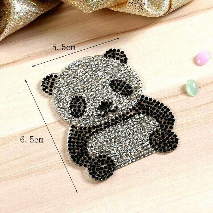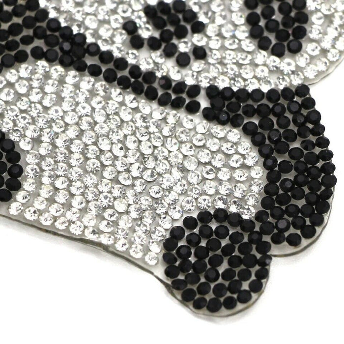 Superb quality panda rhinestone patches set on a hotfix backing with black and silver rhinestones.