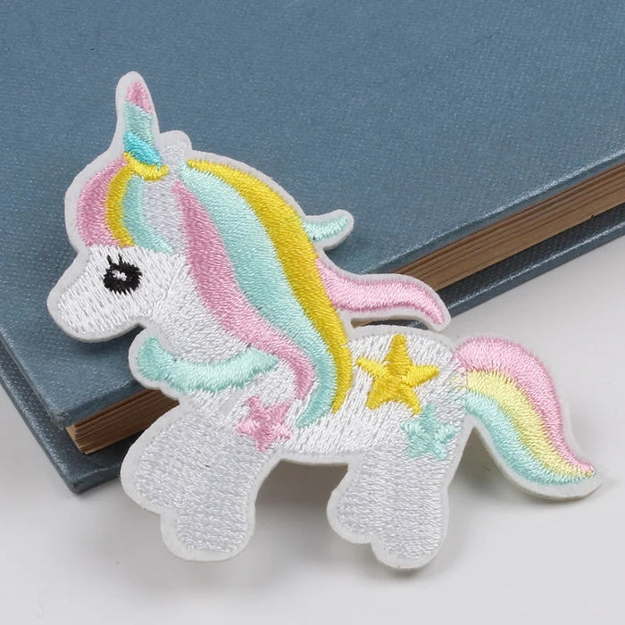 Pastel White Unicorn 9cm Embroidered Iron-On Patch