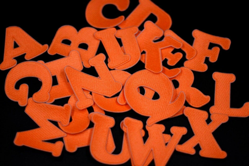 With a slightly cursive style character font, these fiery orange embroidered patch letters are perfect for either name or initial personalisation projects.