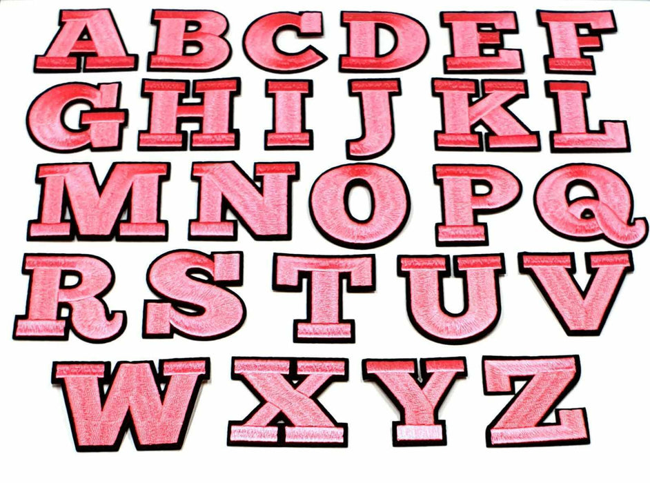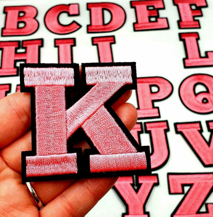 With a pink thread and black edging these letter patches will stand out on any item of clothing with their unique font.