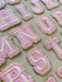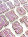 Pink Gold Trim Embroidered 5.8cm Iron On Patch Letters