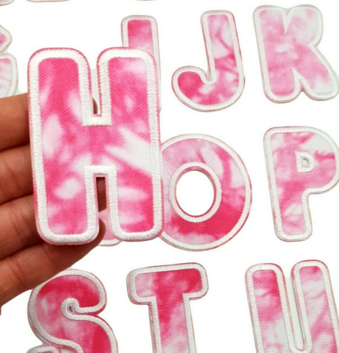 With a slimline curved font, these pink and white tie dye effect embroidered patch letters are perfect for either name or initial personalisation projects.