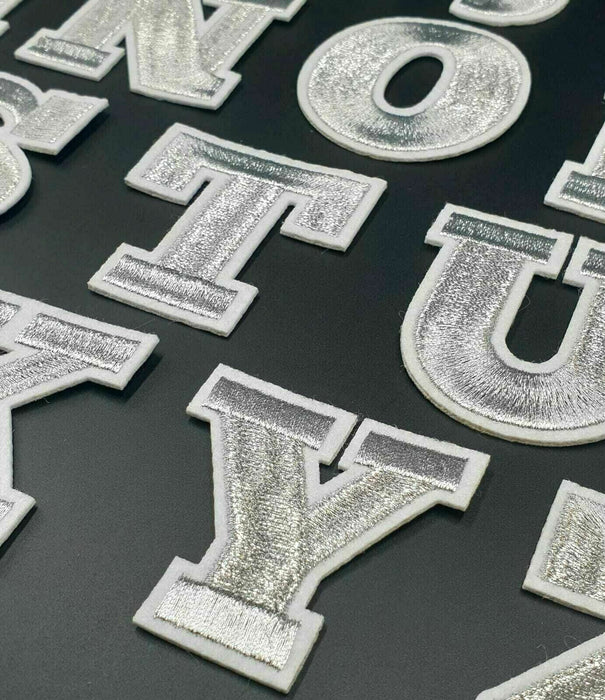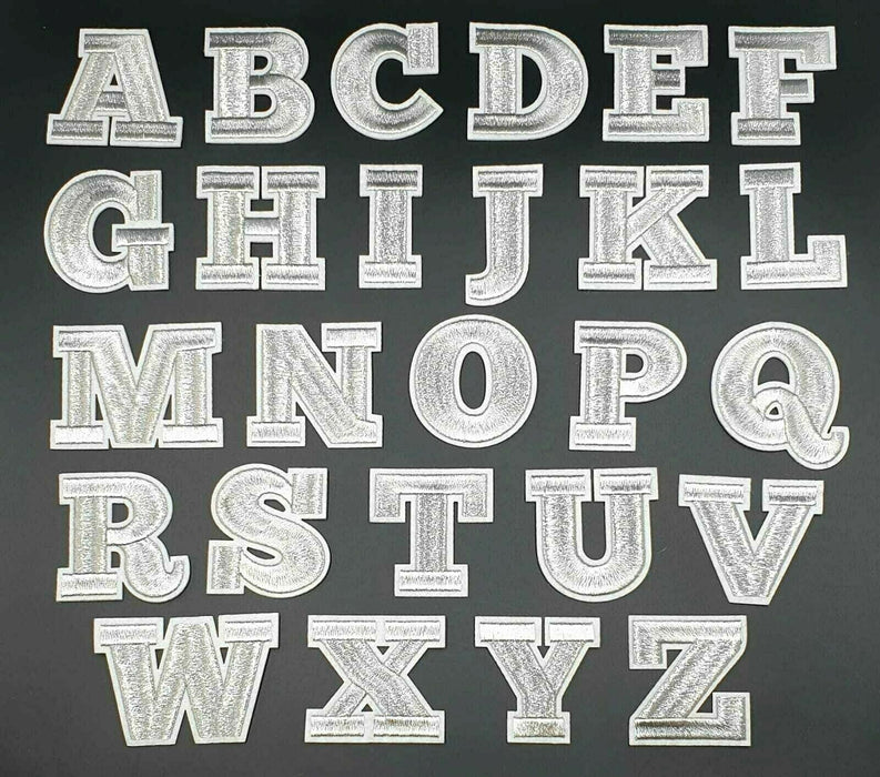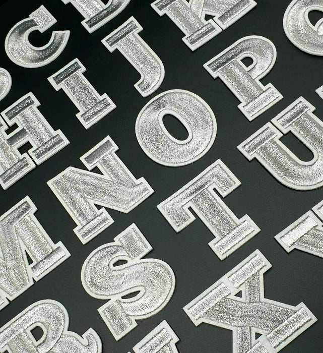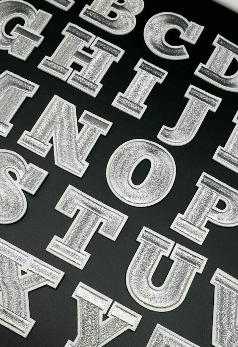 With a silver shimmer and white edging these letter patches will stand out on any item of clothing.