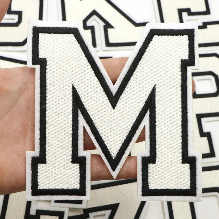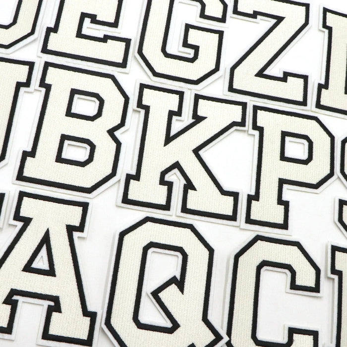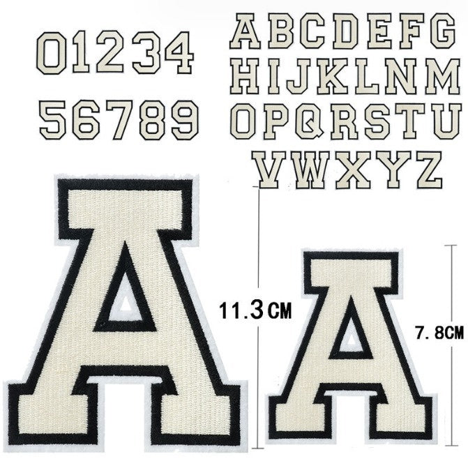 These white embroidered letter patches are very versatile and can be applied on anything from clothes and bags to quilts, cushions and other soft furnishings. They are available in numbers as well.