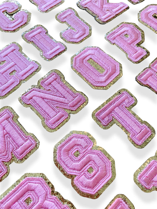 Pink letter patches with a shiny gold edging. These embroidered patches will add colour to your clothes and other items such as hats and bags. They...