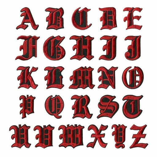 These red and black Old English style letter patches are great for customising clothing and accessories like baseball caps. The font is very unique...