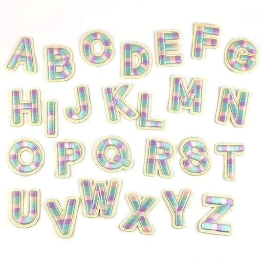 These multi coloured embroidered letters patches have a lovely striped combination of pastel colours with a subtle contrasting yellow border. Thes...