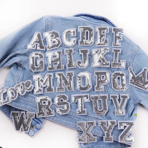 Silver sequin letter patches catch the light making them shine in the light so they they will stand out. Also available as a crown, the word Love a...