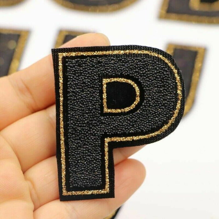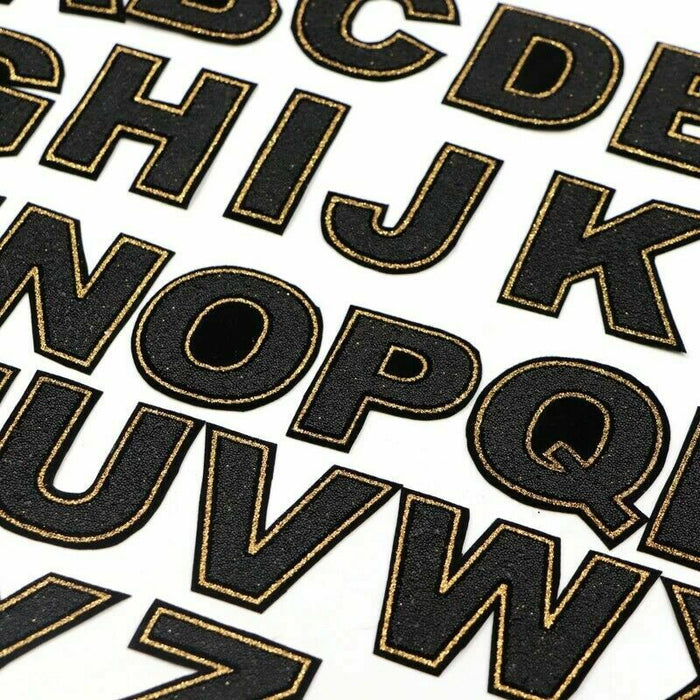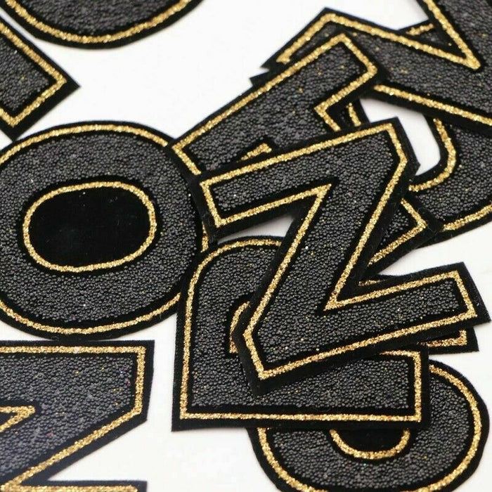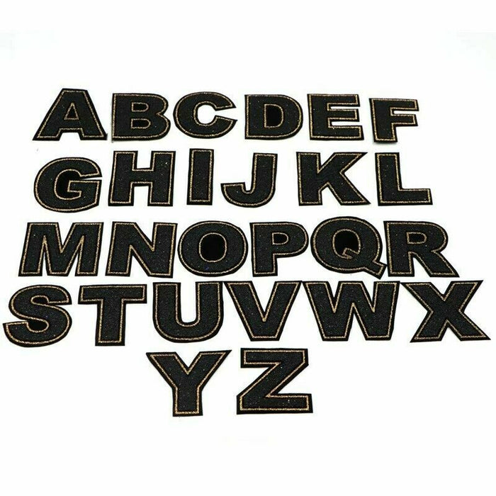 Sparkles are a must when it comes to fashion which is why these letter patches are perfect. The black sparkle finish with a gold trim will catch everyones eye.