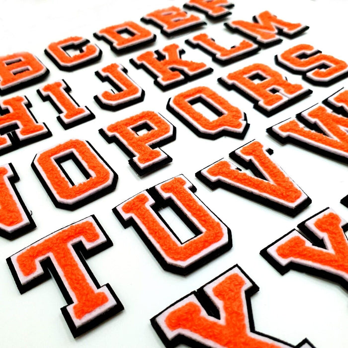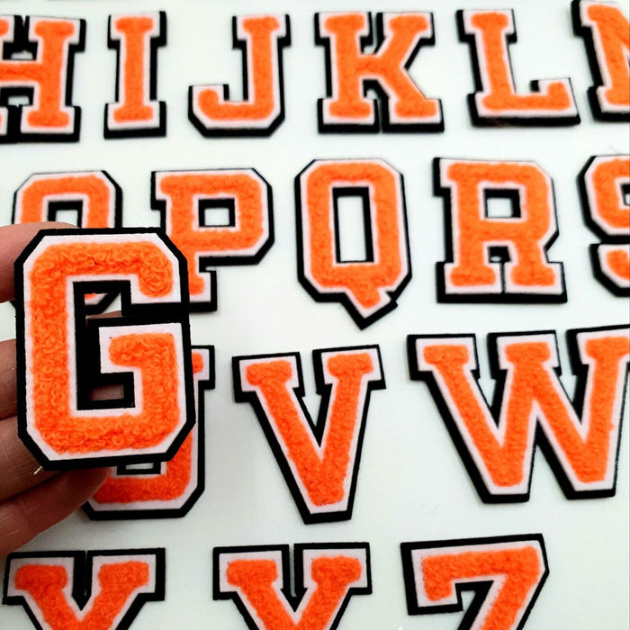 With a bold varsity font these iron-on orange chenille letter patches are simply exquisite in a broad range of colourways on a 3D effect contrasting black and white felt backing. They come in a wide range of colours which you can mix and match if you are not able to settle on one colour.