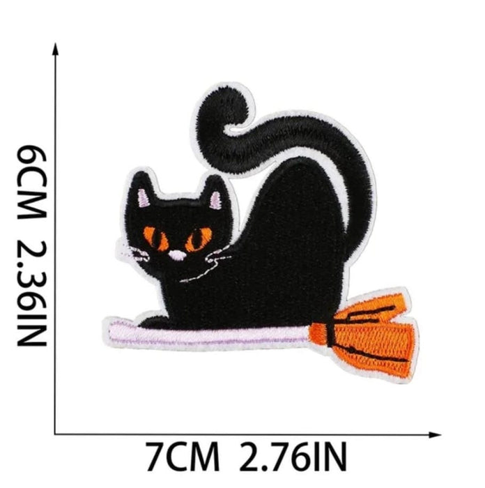 Black Cat Broomstick Halloween Iron-On Patch