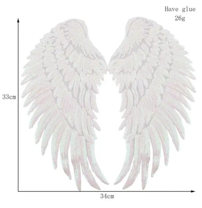 Large 33cm White Angel Wings Sequin Iron-On Patches