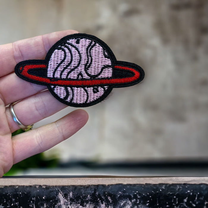 Pink Planet Embroidered Iron-On Patch
