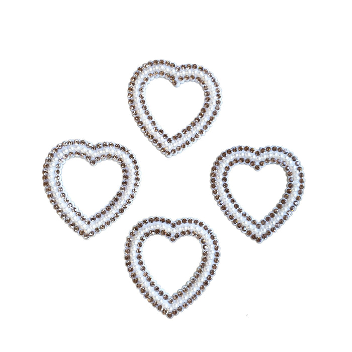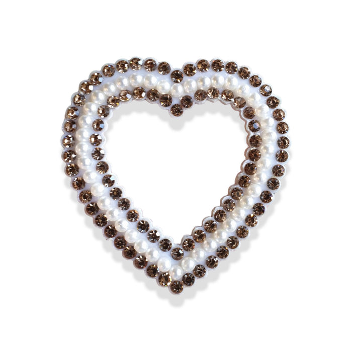 Pearl Gold Rhinestone Heart 6.5cm Iron-On Patches