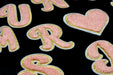 Pink Chenille Gold Trim 7cm Iron On Patch Letters