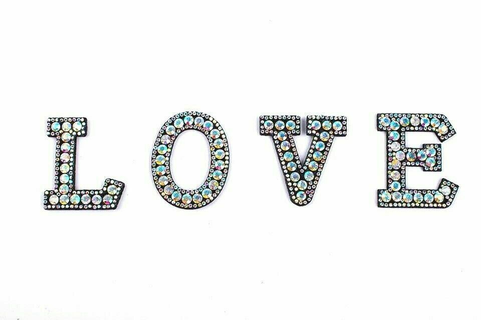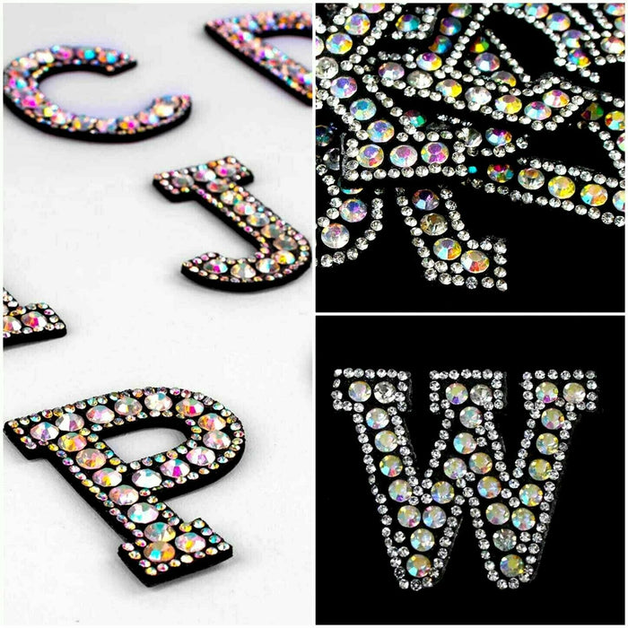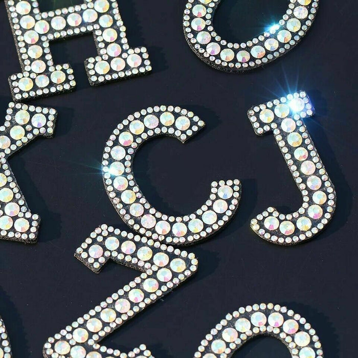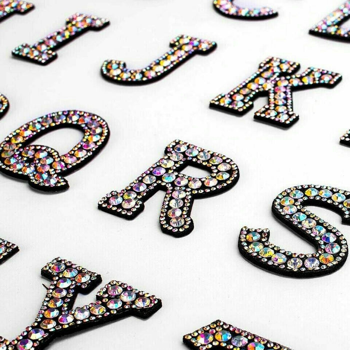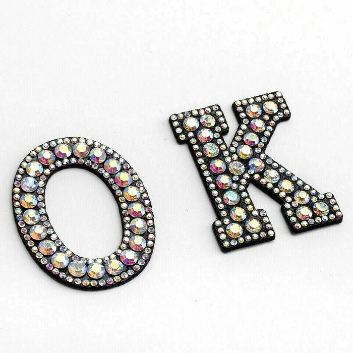 Iridescent AB Rhinestone Sparkle Black 4.7cm Iron-on Patch Letters