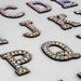 Iridescent rhinestone letter patches look great on any item of clothing and any colour because their stones catch the light causing them to sparkle and change colour. These patches are perfect for putting initials on smaller items such as hats and slippers and look amazing as a word on the back of a denim jacket. Another way to use these patches is to help add some sparkle to a brides outfit.