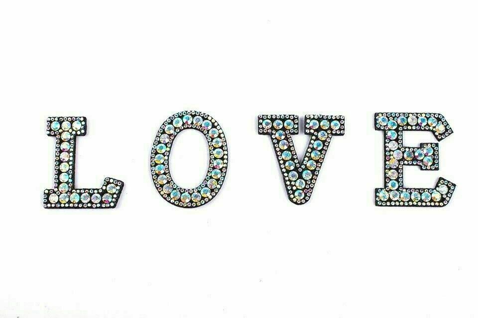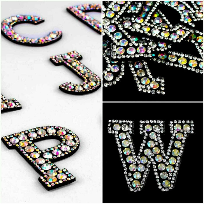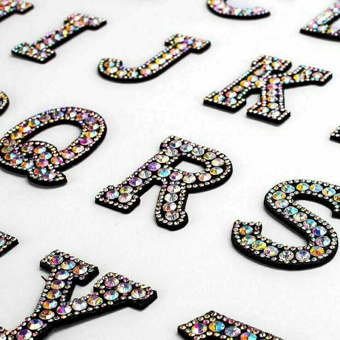 Iridescent rhinestone letter patches look great on any item of clothing and any colour because their stones catch the light causing them to sparkle and change colour. These patches are perfect for putting initials on smaller items such as hats and slippers and look amazing as a word on the back of a denim jacket. Another way to use these patches is to help add some sparkle to a brides outfit.