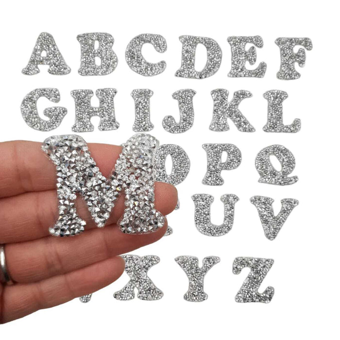 Silver Rhinestone Serif Style 3.3cm Iron-On Patch Letters