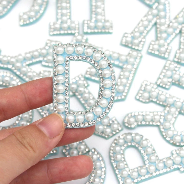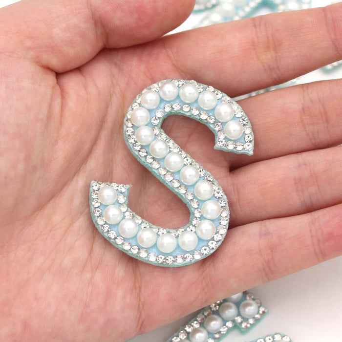 White Pearl Blue Rhinestone 4.6cm Iron-On Patch Letters